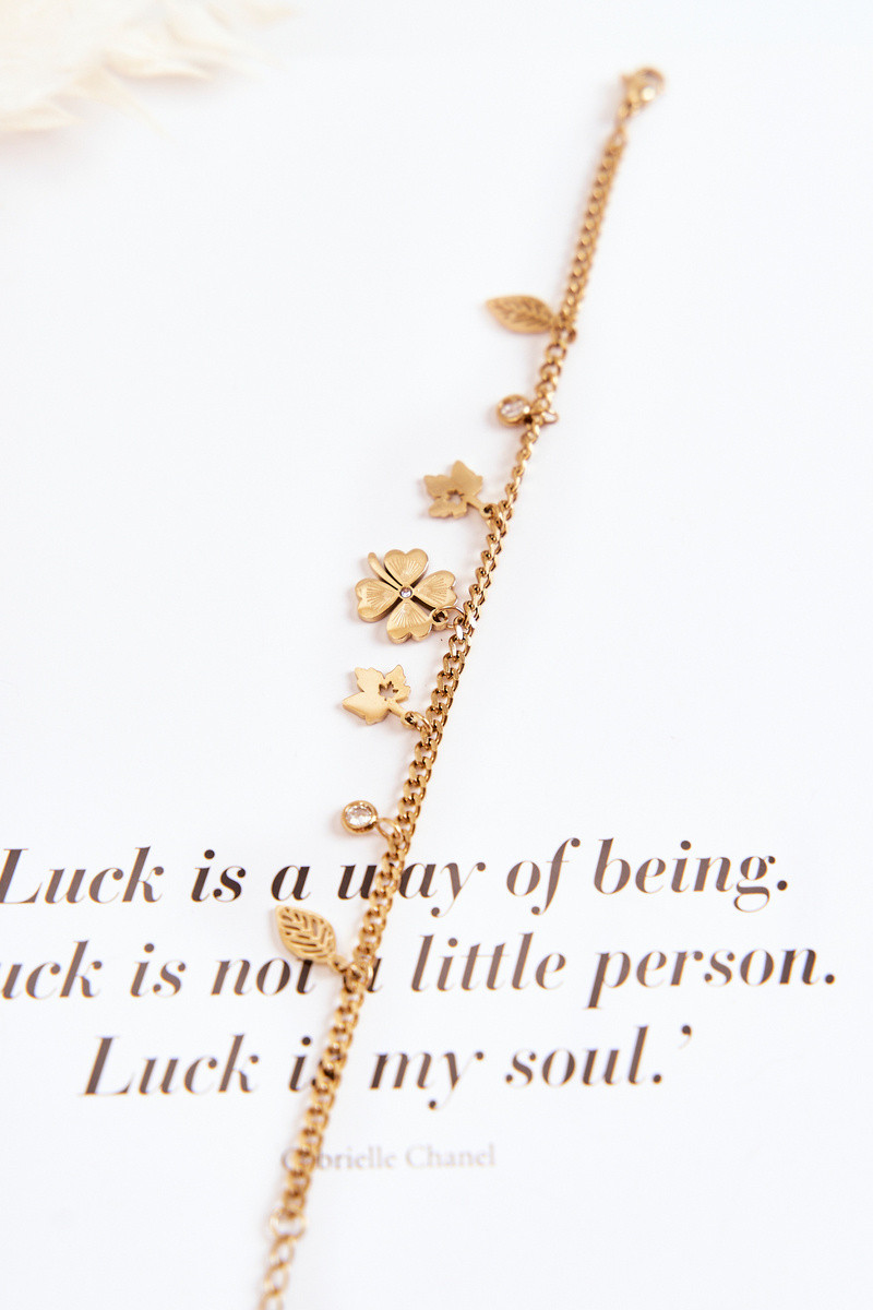 Goldfarbene Fußkette mit Kleeblatt und Blättern