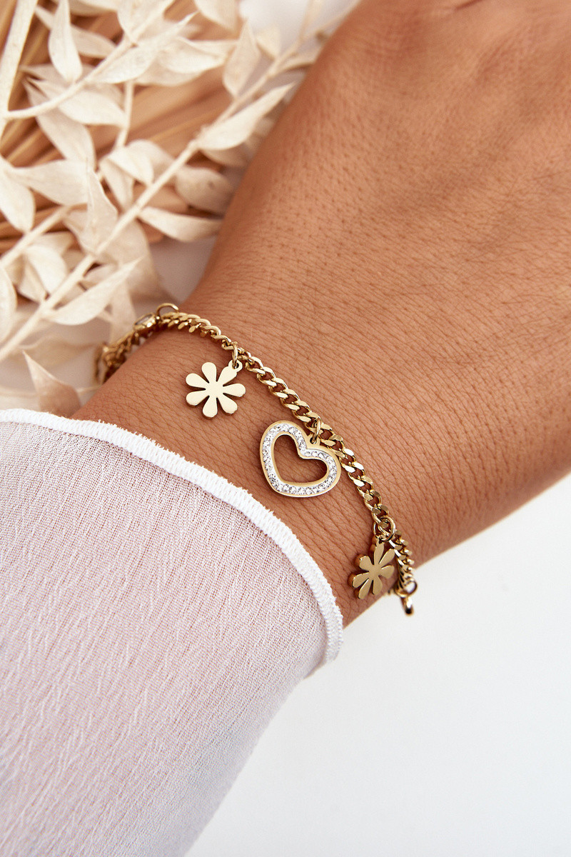 Reichhaltiges Armband mit Blumen und Herz in Goldfarbe
