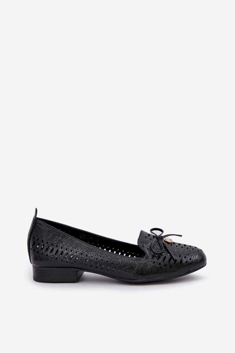Ażurowe Ballerinas mit Schleifen aus Kunstleder in Schwarz Amepitrea mit Lackeffekt