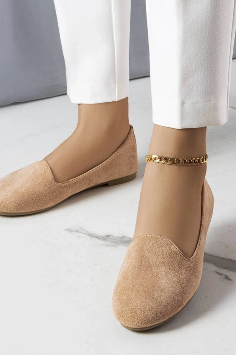 Sandfarbene Kunstvelours-Balletschuhe Marion
