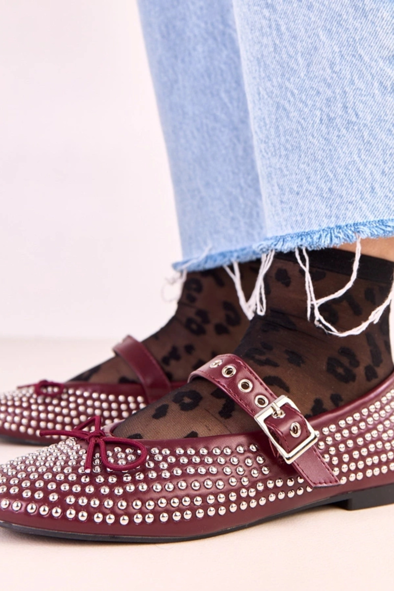Dunkelrote Ballerinas Mylie, dekoriert mit Nieten und Schleife