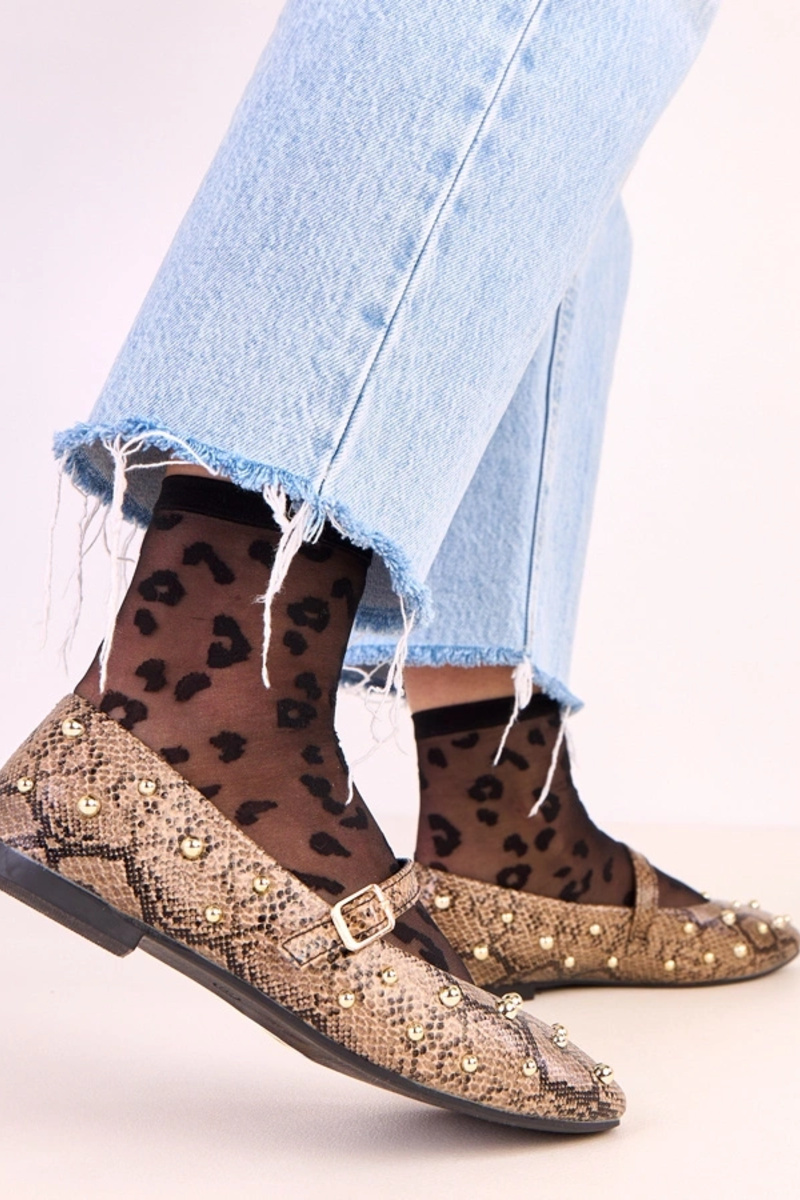 Braune Ballerinas Selena mit Schlangenledermotiv, dekoriert mit Perlen