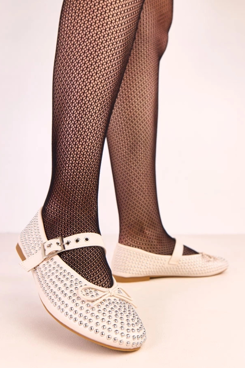 Sandfarbene Ballerinas mit Nieten und Schleife Mylie