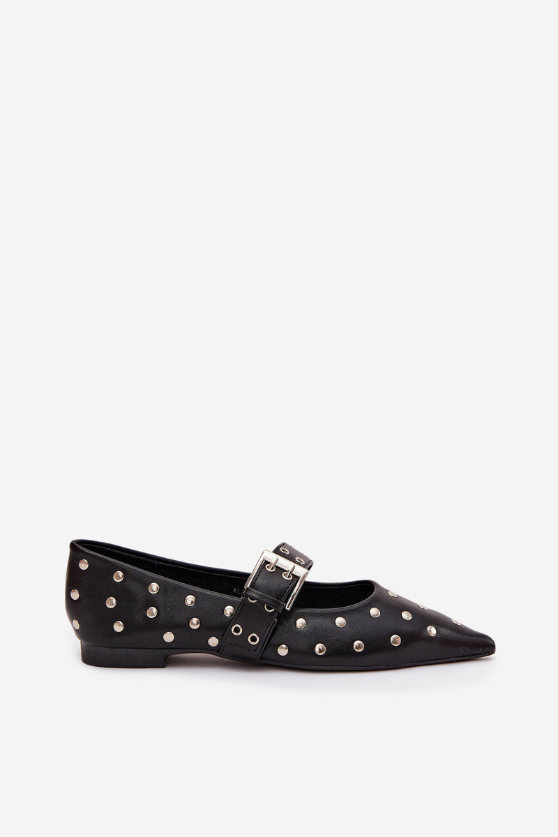 Ballerinas mit Nieten I mit Schnallen Eko Haut schZuarze Farbe Arlenne