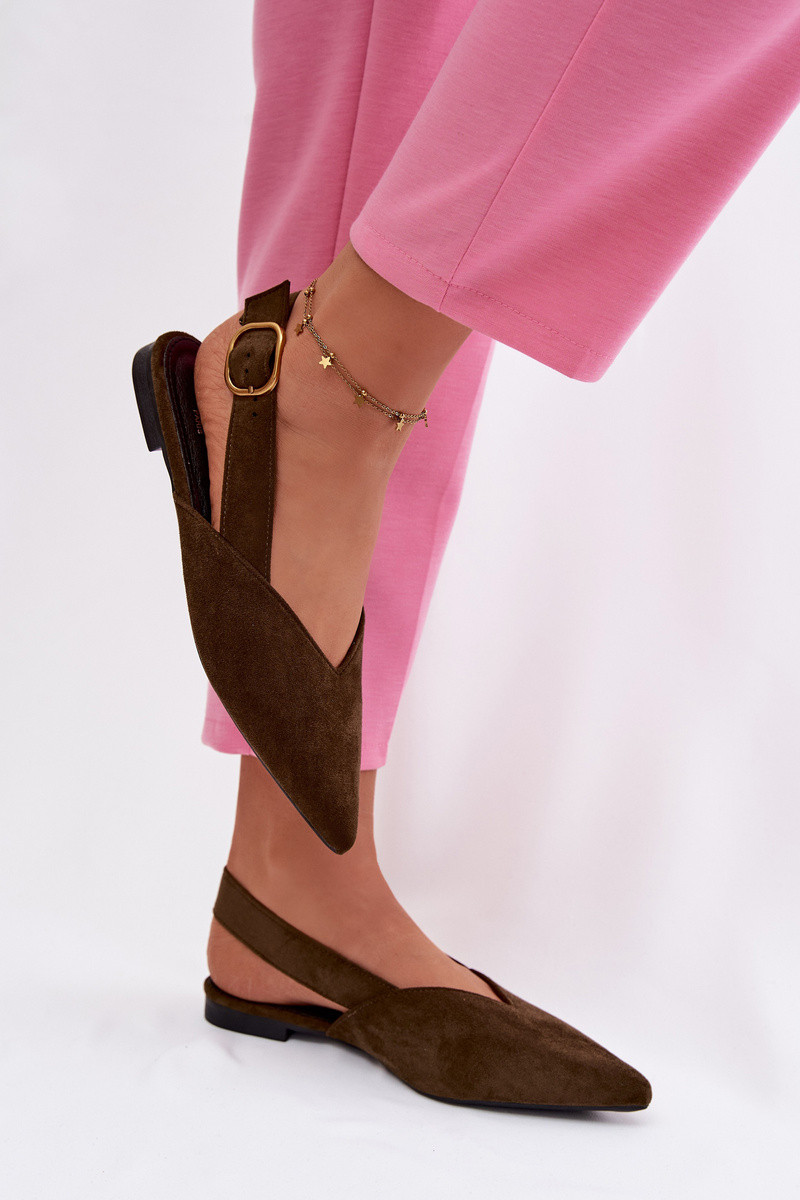 Ballerinas mit goldenen Schnallen aus Öko-INildlederoZue grüne Farbe Palerra