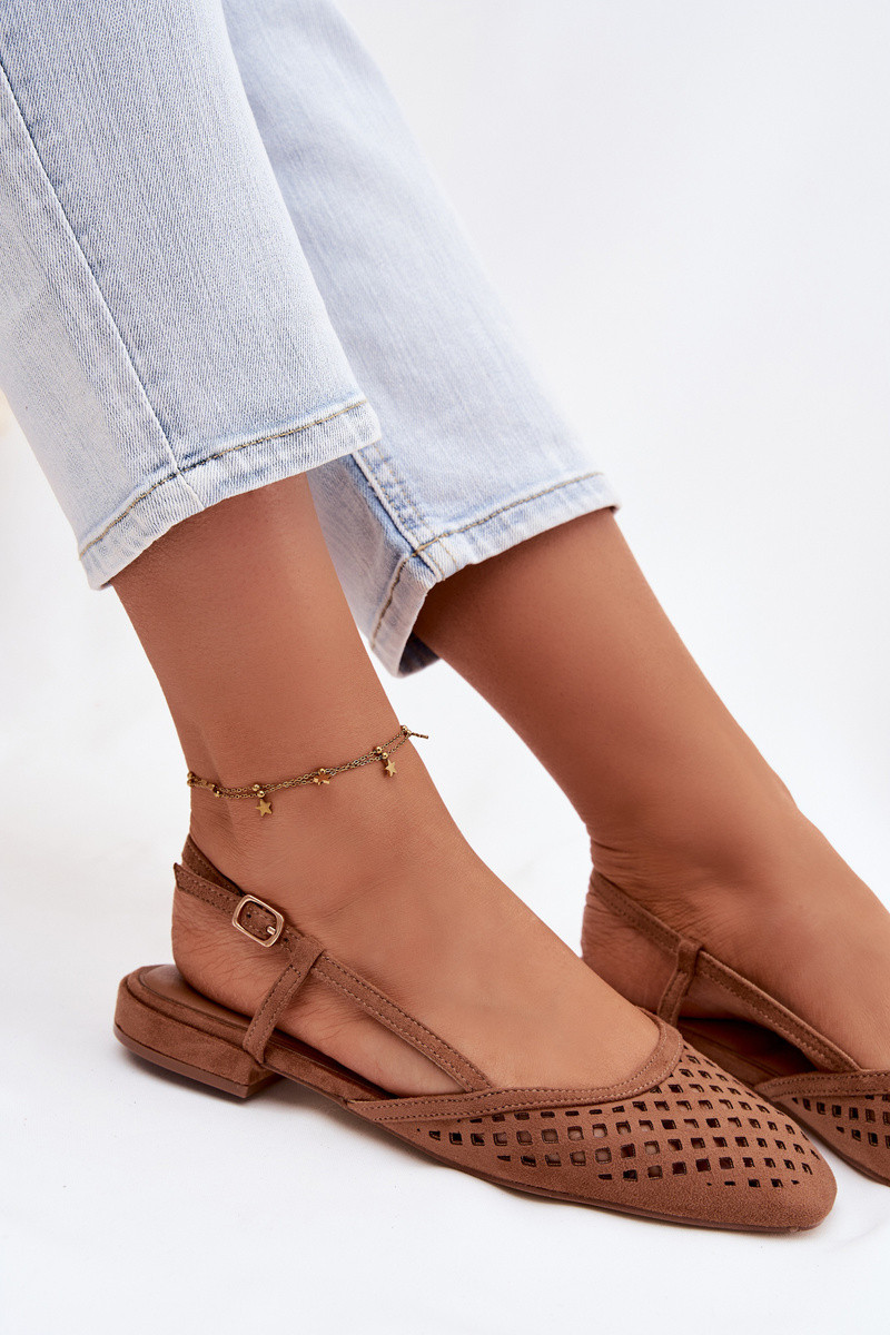 Durchbrochene Ballerinasaus Öko-INildlederu braune Farbe Farivelle