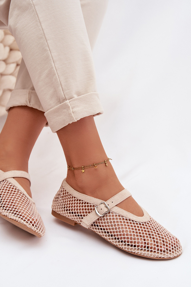 Pherina Netz-Ballerinas mit Riemen in Elfenbein