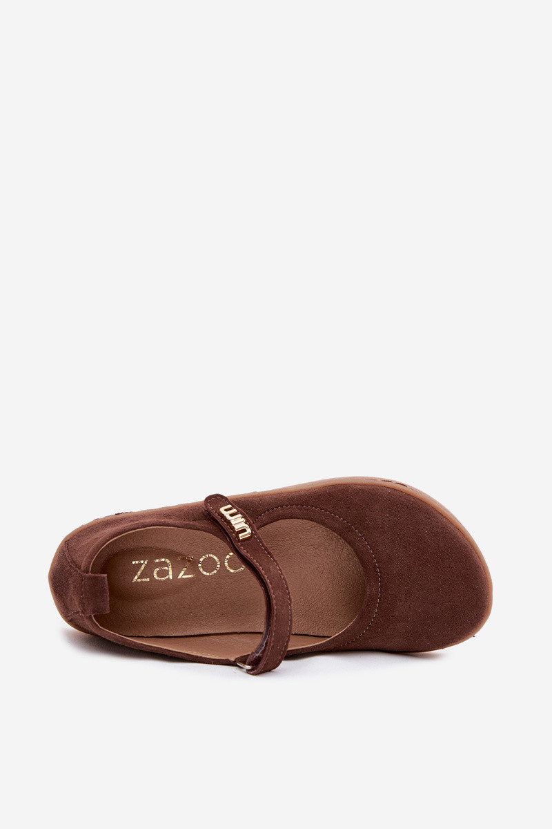 Lederne Wildlederschuhe Barefoot Ballerinas mit Riemchen Zazoo 10206 in Schokoladenfarbe