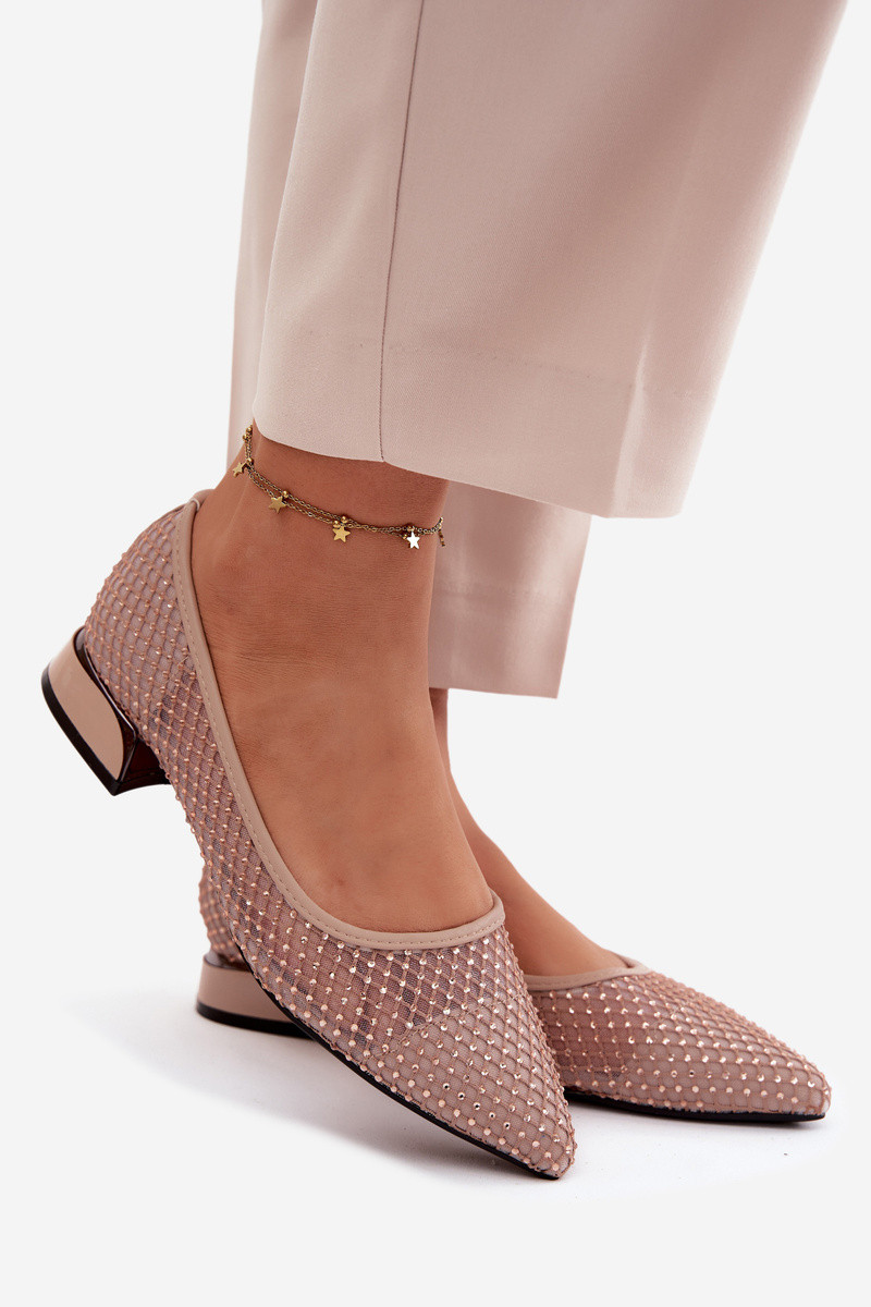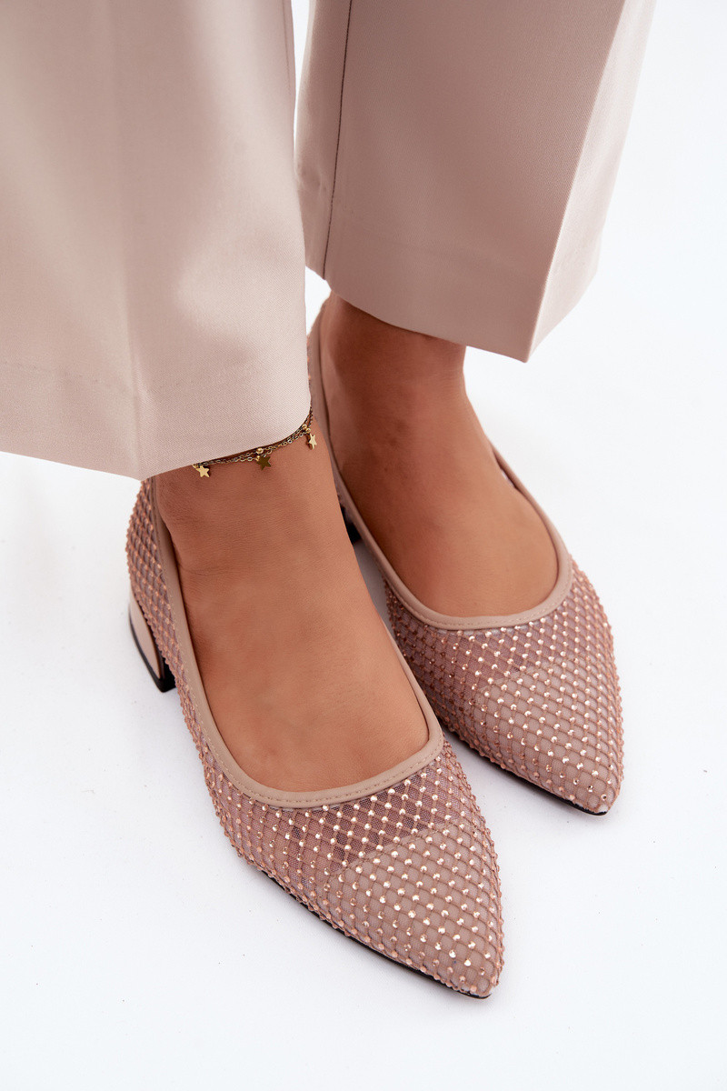 Beige Ballerinas mit niedrigem Absatz und Netzdekoration Vinceza 62294
