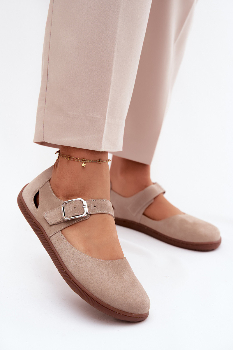 Haut Ballerinas aus INildleder Barefoot mit Riemen Zazoo N1319 Beige