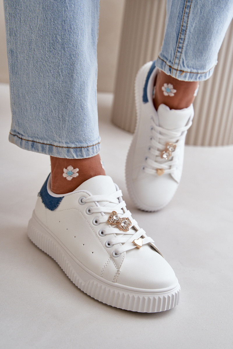 Sneakers mit flacher Sohle aus Öko-Leder Z Pryznakami Weiß-blaue Farbe Cillione