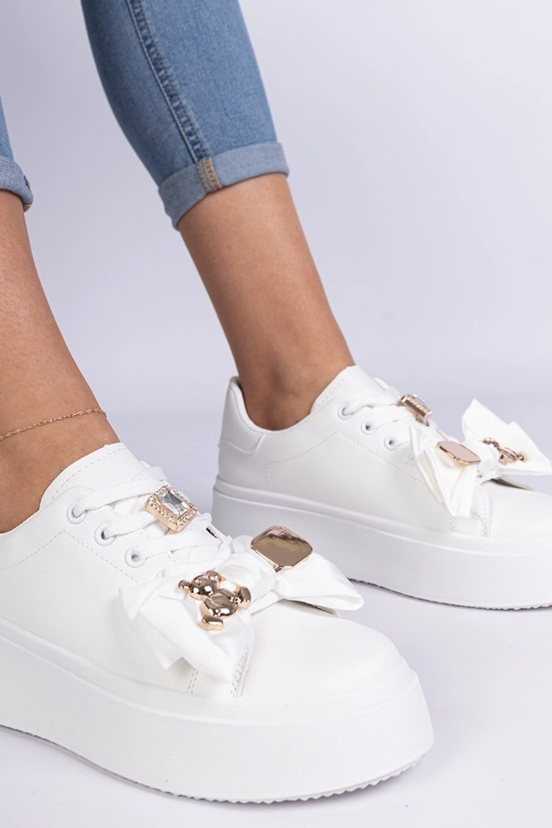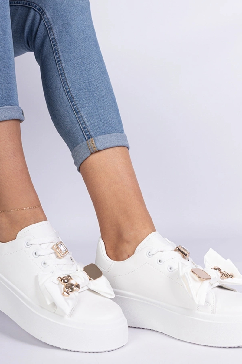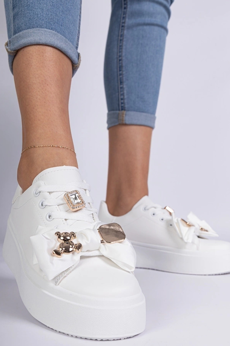 Milonel weiße Sneakers für Damen mit Teddy-Verzierung