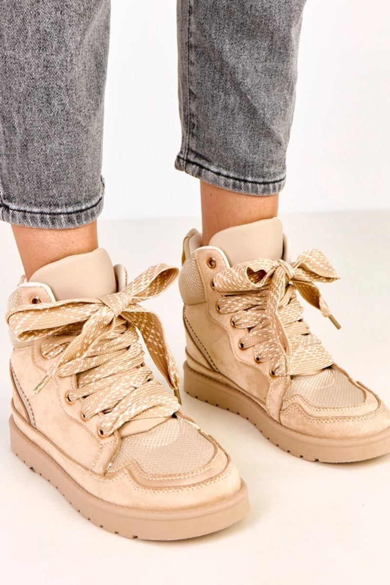 Sandfarbene hohe Sneakers mit dicken Schnürsenkeln Klevis