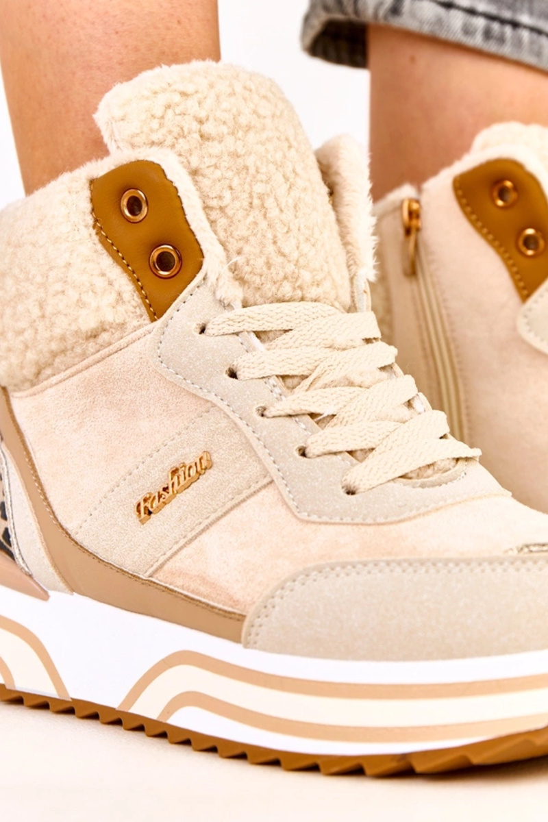 Sandfarbene hohe warme Sneakers mit Fell Mirasen
