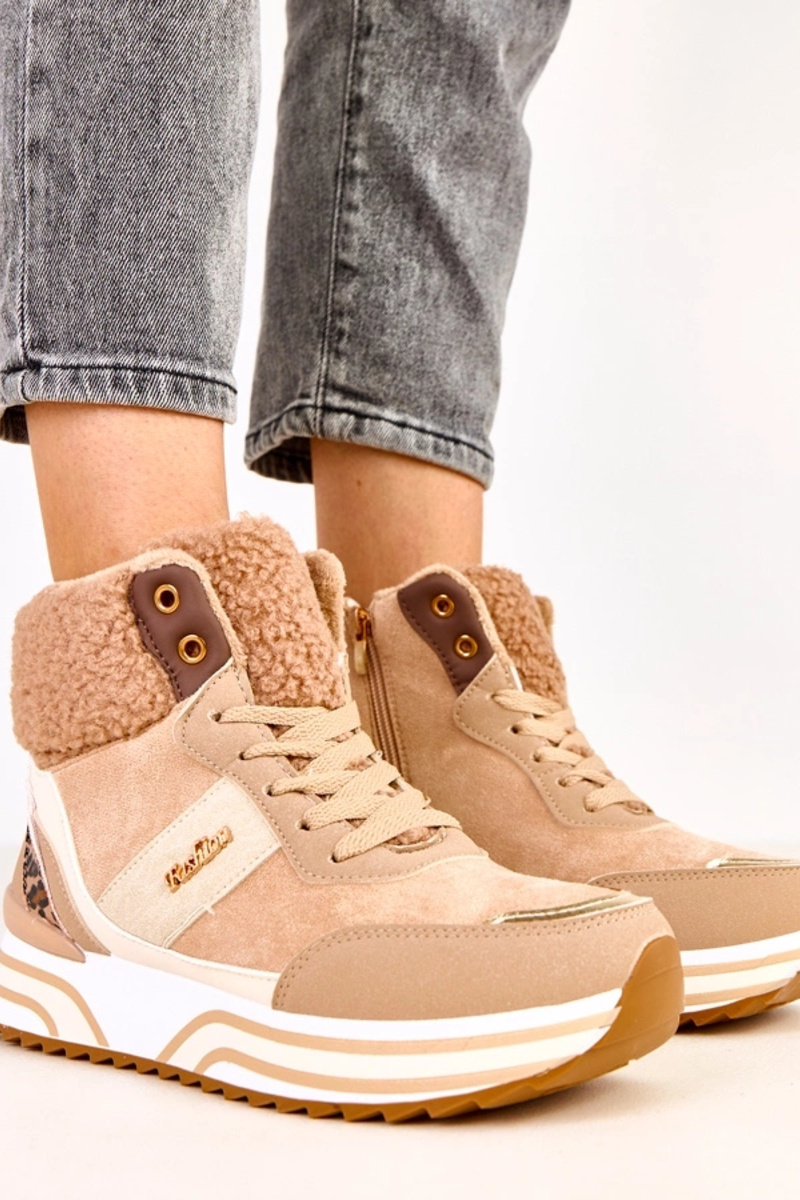 Dunkel-sandfarbene hohe warme Sneakers mit Fell Mirasen