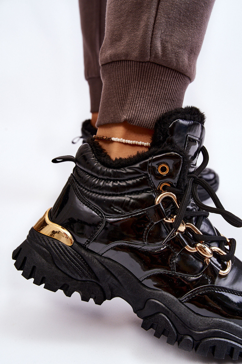 Damen Warm gefütterte Sportschuhe mit Schnürsenkeln in Schwarz Bastini