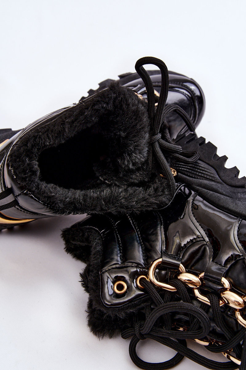 Lederstiefeletten mit fester Sohle SchZuarz und-Violette Farbe Elkiza