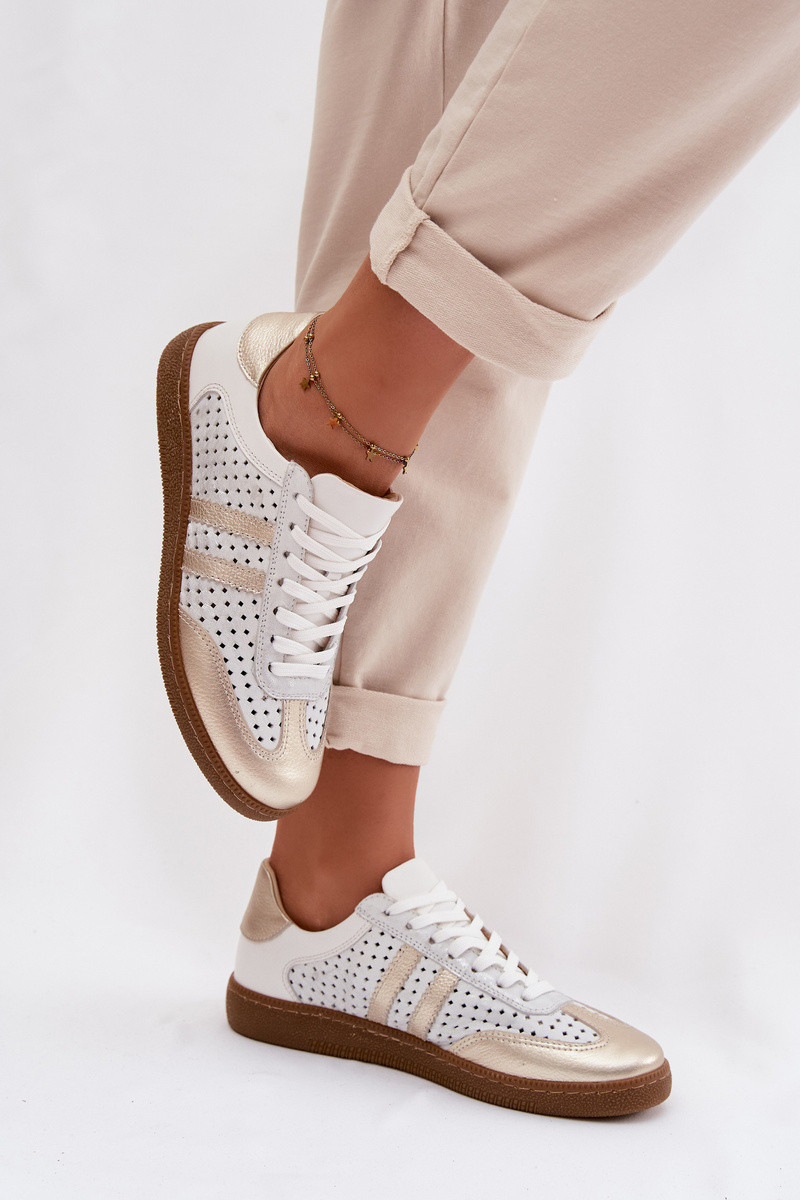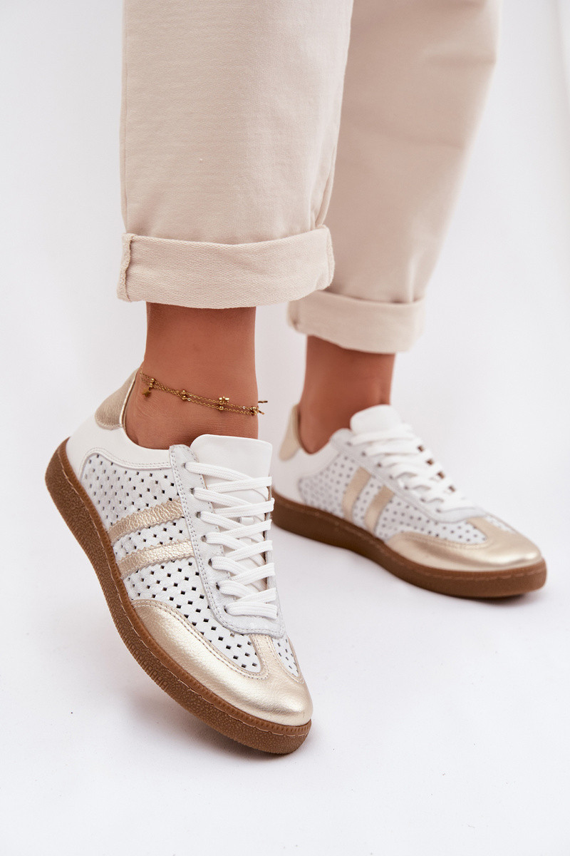 Haut mit durchbrochenen Elementen Sneakers Stilvollllschuhe Feminin Zazoo N1318 grau-goldene Farbe
