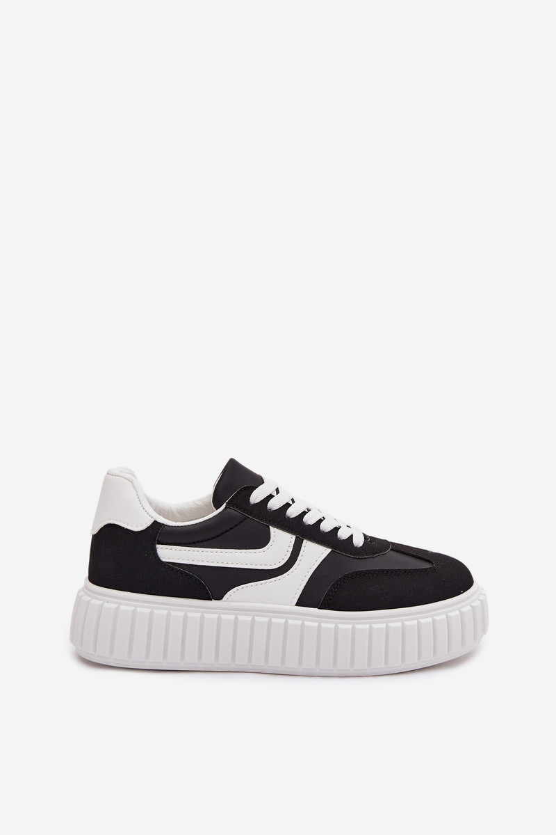 Sneakers Stilvollllschuhe Feminin mit einer Plattformaus Öko-INildlederu schZuarze Farbe Cadrina