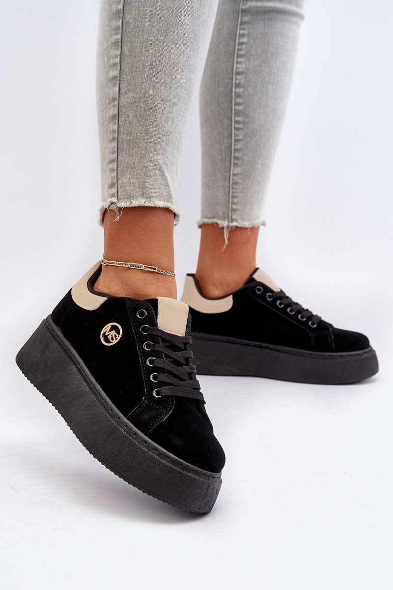 Sneakers Stilvollllschuhe Feminin mit einer Plattform schZuarze Farbe Eshen