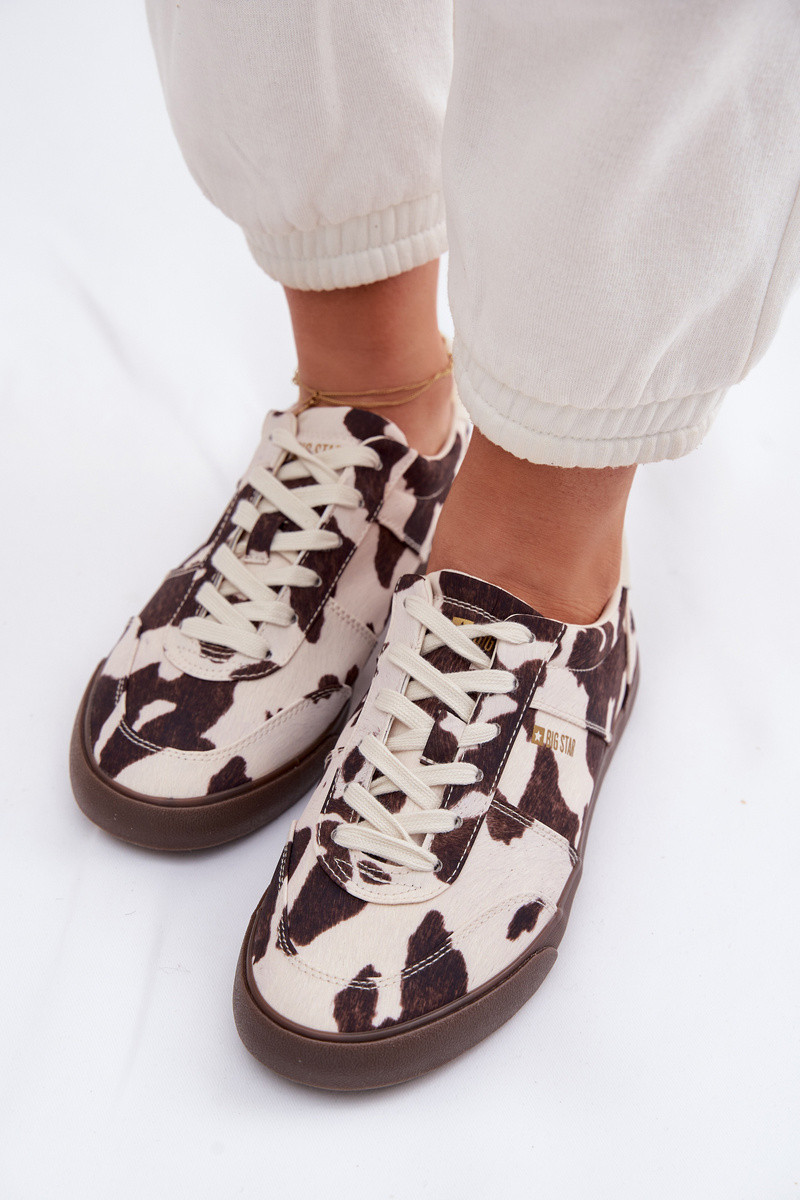 Damen Sportschuhe mit Patches Big Star TT274369 weiß-braune Farbe