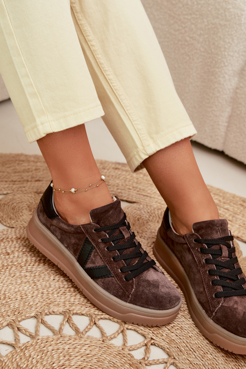 Damen-Sportschuhe aus echtem Wildleder mit Plateau Vinceza 79597 braun