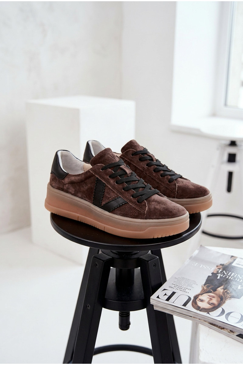 Damen-Sportschuhe aus echtem Wildleder mit Plateau Vinceza 79597 braun