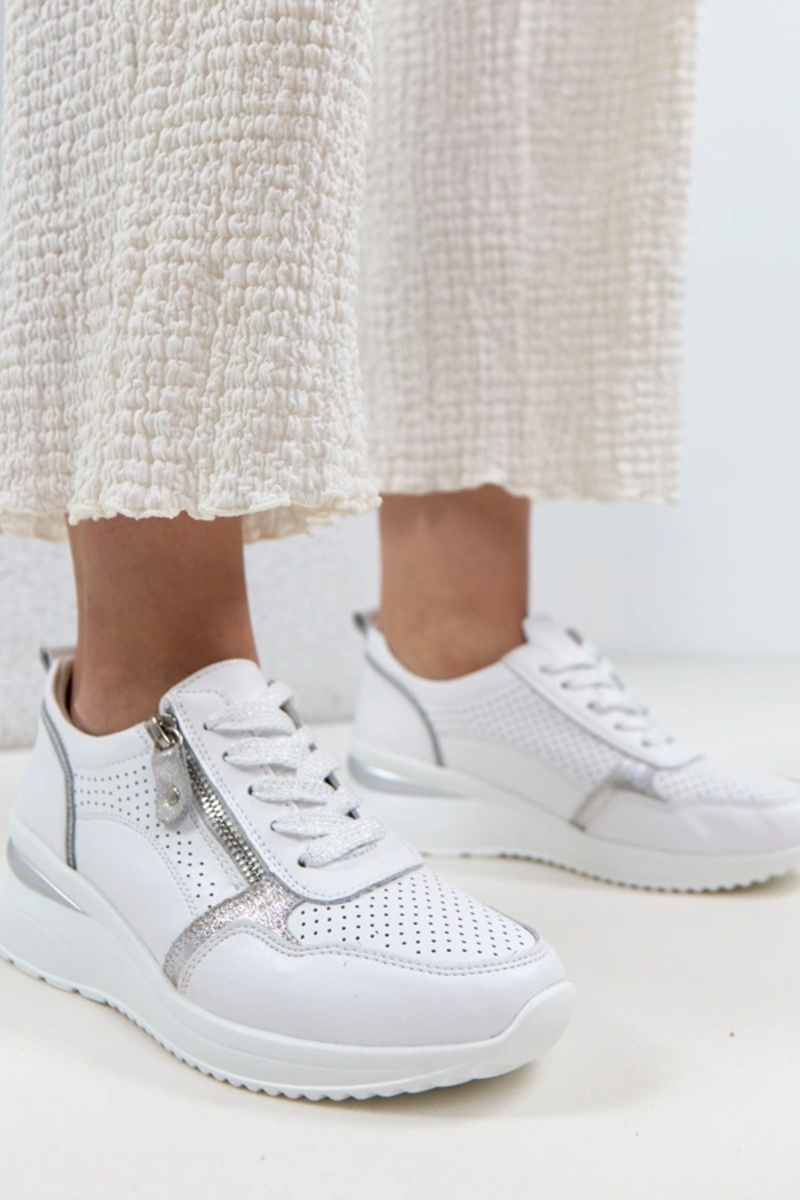 Weiße Leder-Schuhe mit verstecktem Absatz Cambell