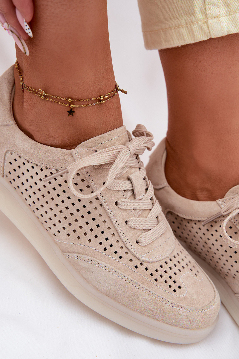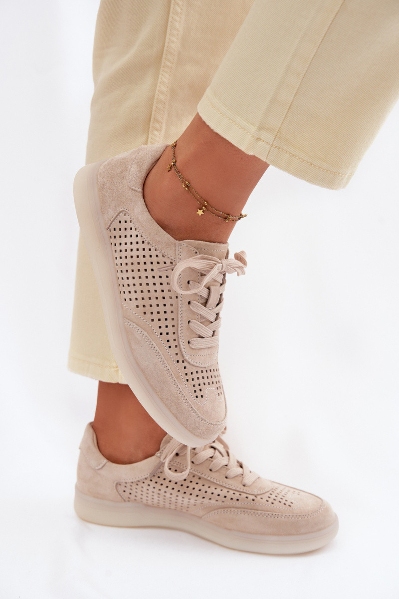 Wildleder-Sport-Schuhe für Frauen mit durchbrochenen Elementen sandfarben Almora