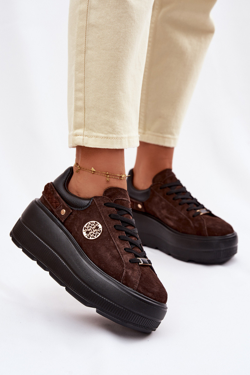 Wildleder-Sport-Schuhe für Frauen mit Plattform D&A LR61-7094 schokoladenfarben