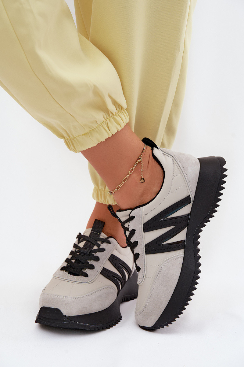 aus INildleder Sneakers Stilvollllschuhe Feminin mit einer Plattform Vinceza 41521 graue Farbe