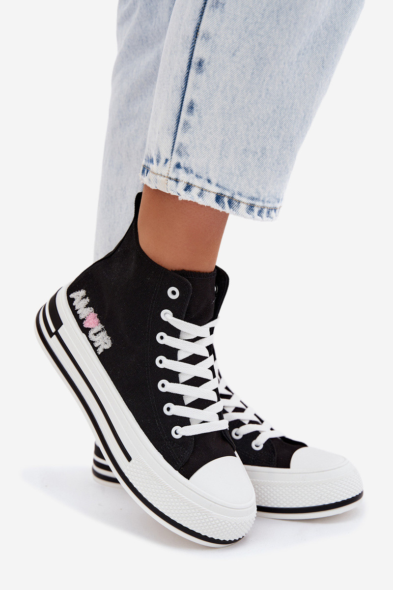 Schwarze hohe Freizeitschuhe mit Plattform Liline