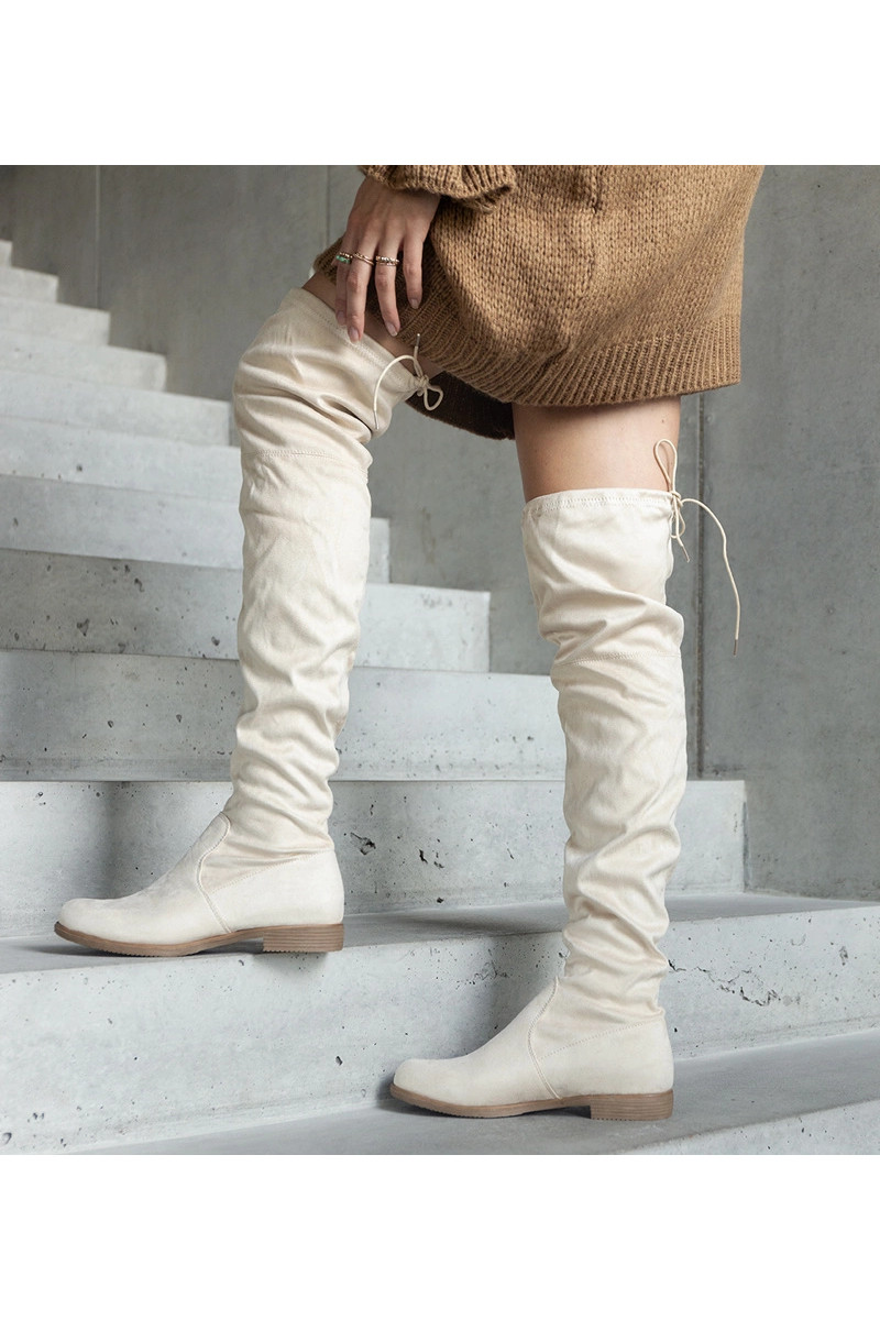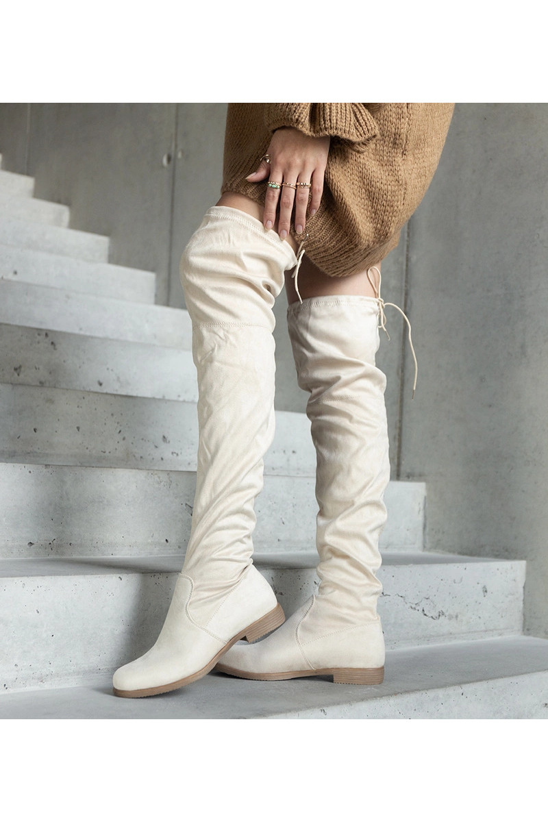 Beige lange Stiefel auf Plateau aus Eko-Suede Hallora