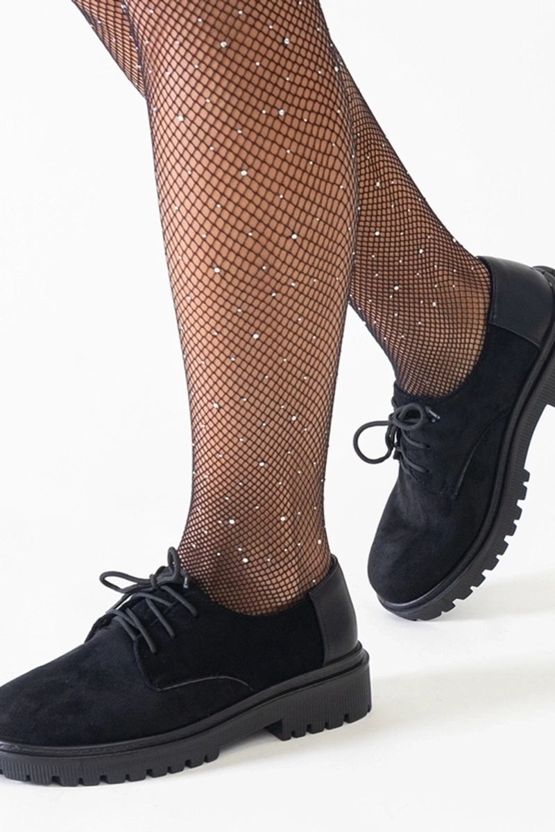 Schwarze Freizeitschuhe mit Schnürung aus Kunstwildleder Kalila