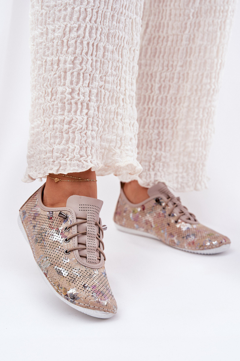Damen Sandfarbene Leder Schuhe mit Mustern Artiker 56C2689