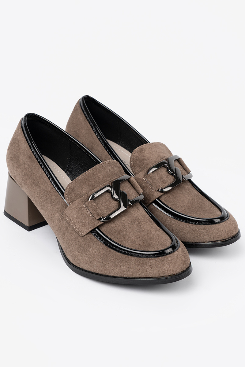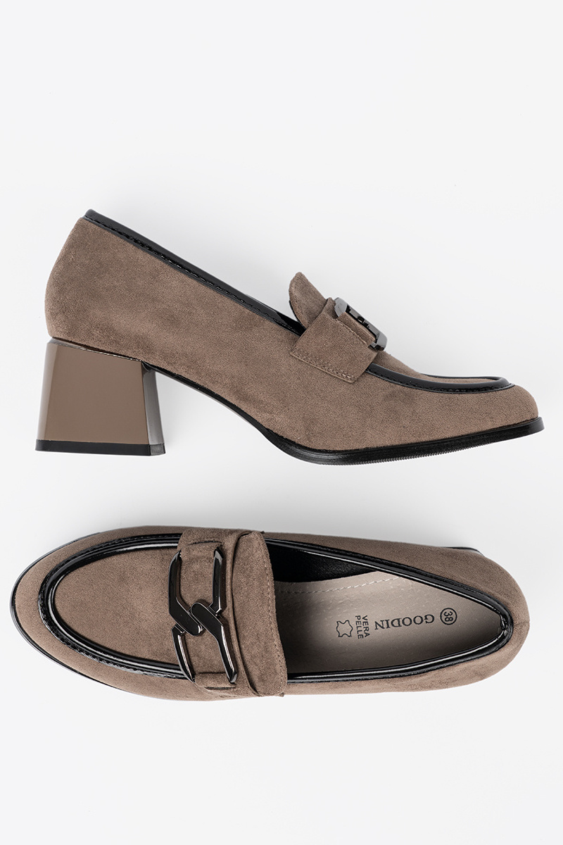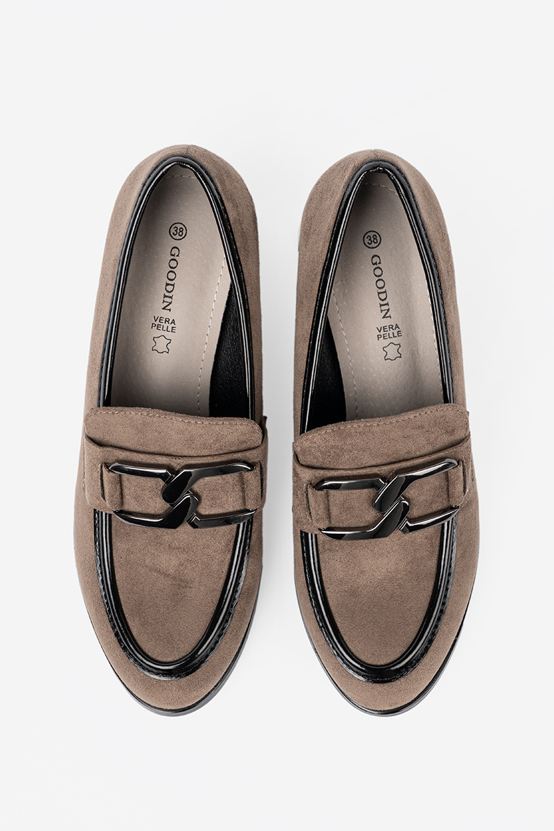 aus INildleder Beige Halbschuhe auf einer dicken Stange