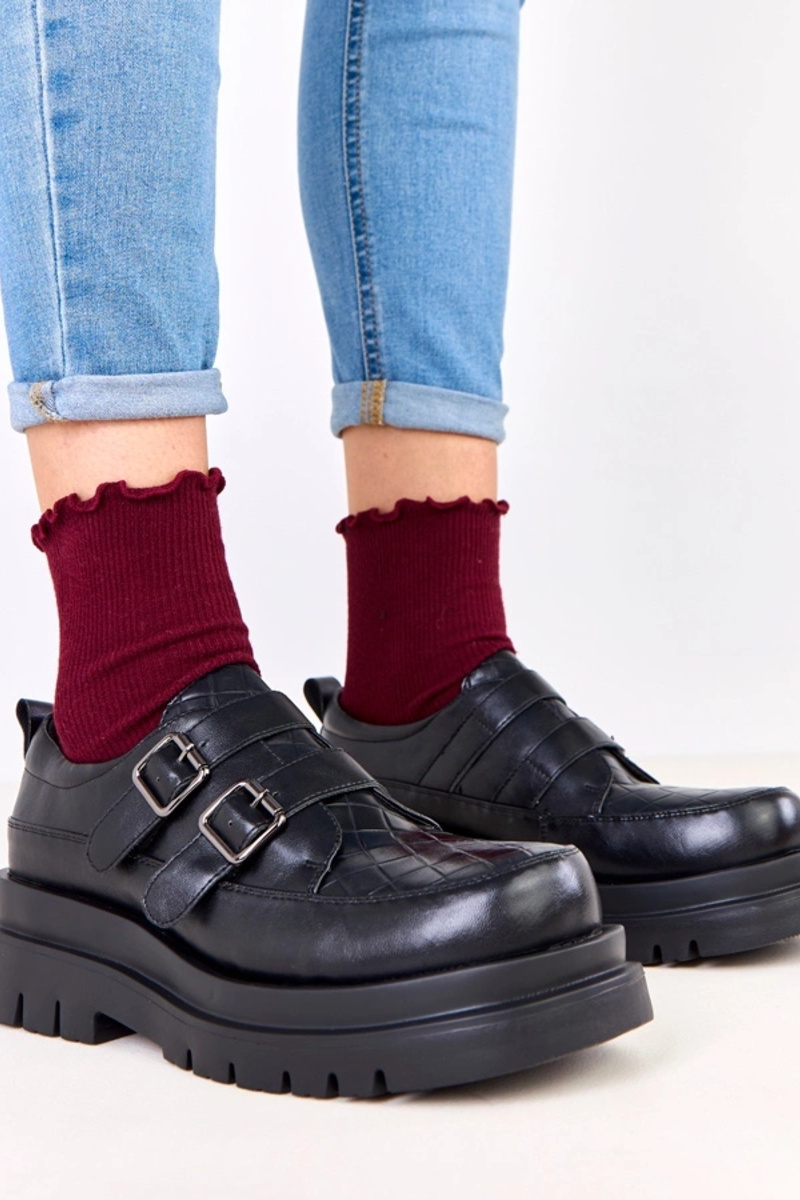 Schwarze Halbstiefel auf massiver Sohle, dekoriert mit Schnallen, Juke