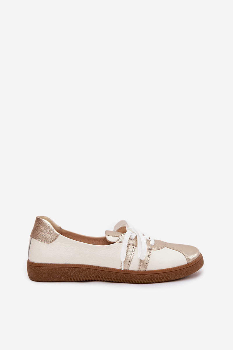 Weiße- und goldfarbene Leder-Damen "Barefoot" Schuhe Zazoo N1341
