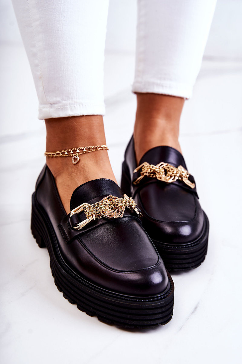 Feminin Schuhe goldene Farbe Ozdoba Haut Laura Messi 2383 schZuarze Farbe