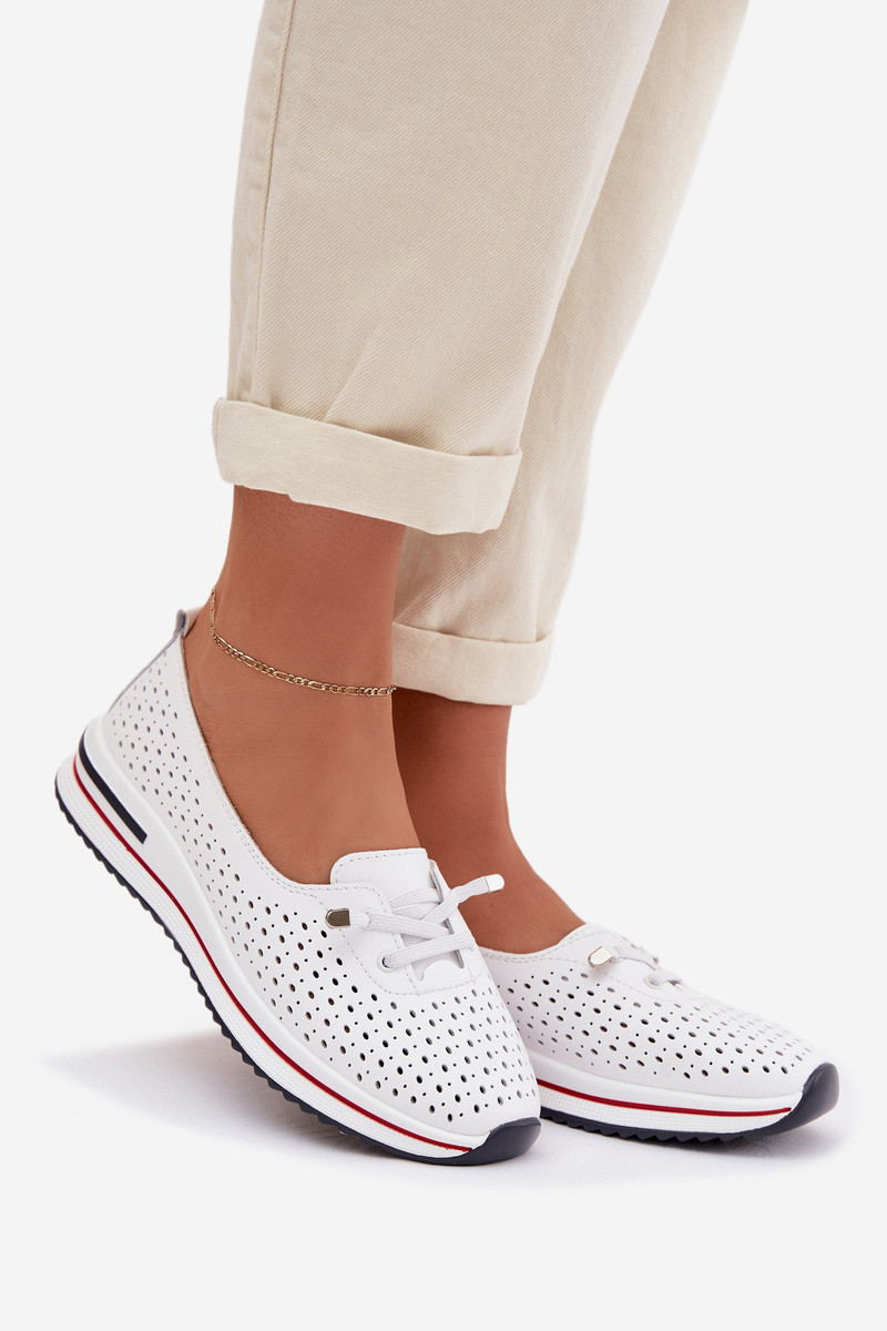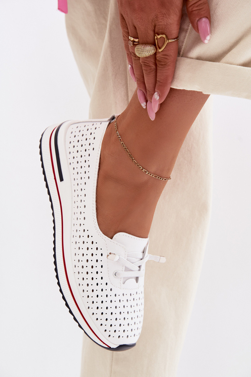 Damen-Schuhe aus Leder mit Ausschnitt-Elementen S.Barski LR61-7044 in Weiß