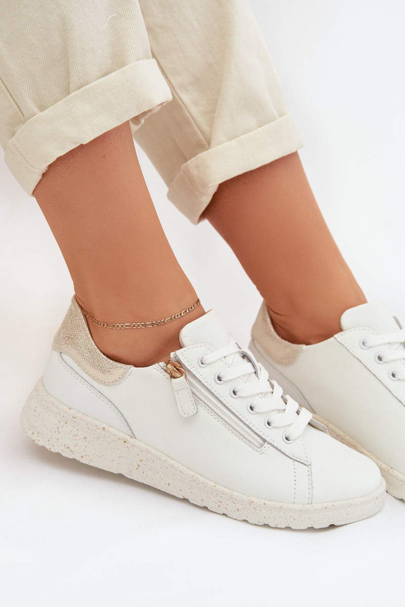 Lederstiefel für Frauen mit Reißverschluss in Weiß-Gold Dorothea