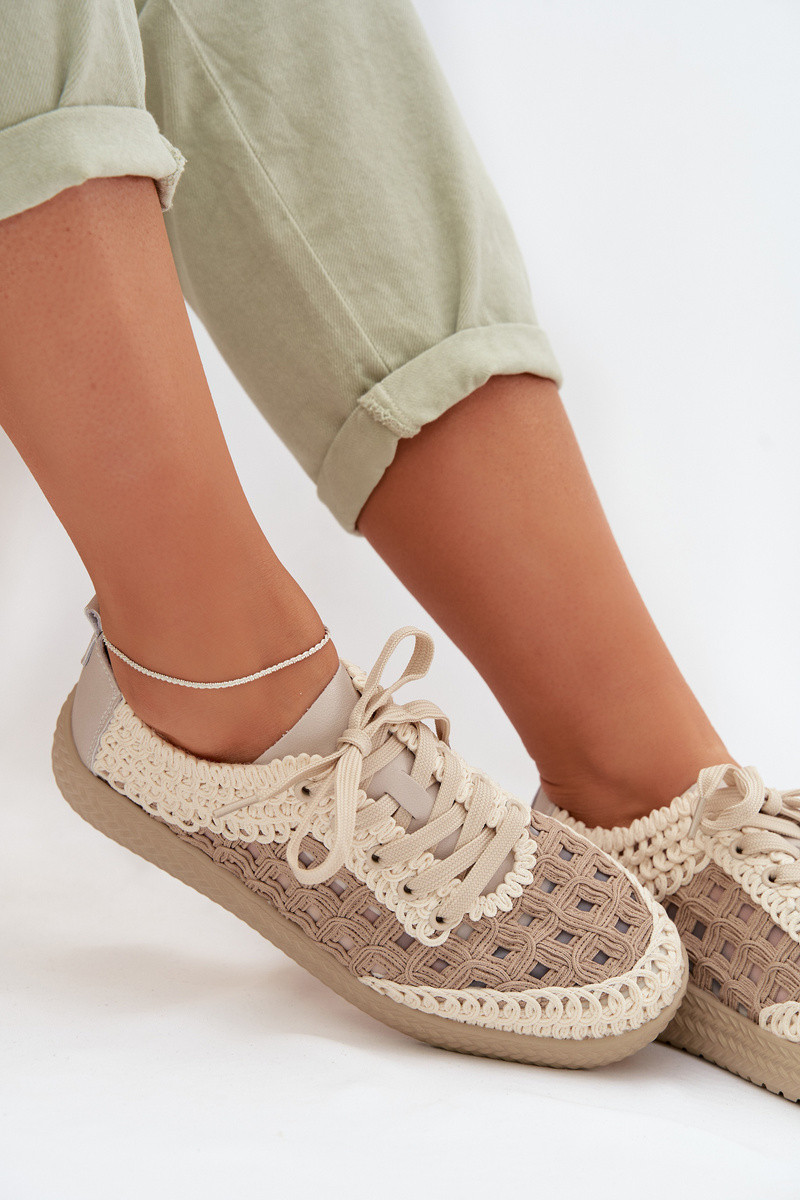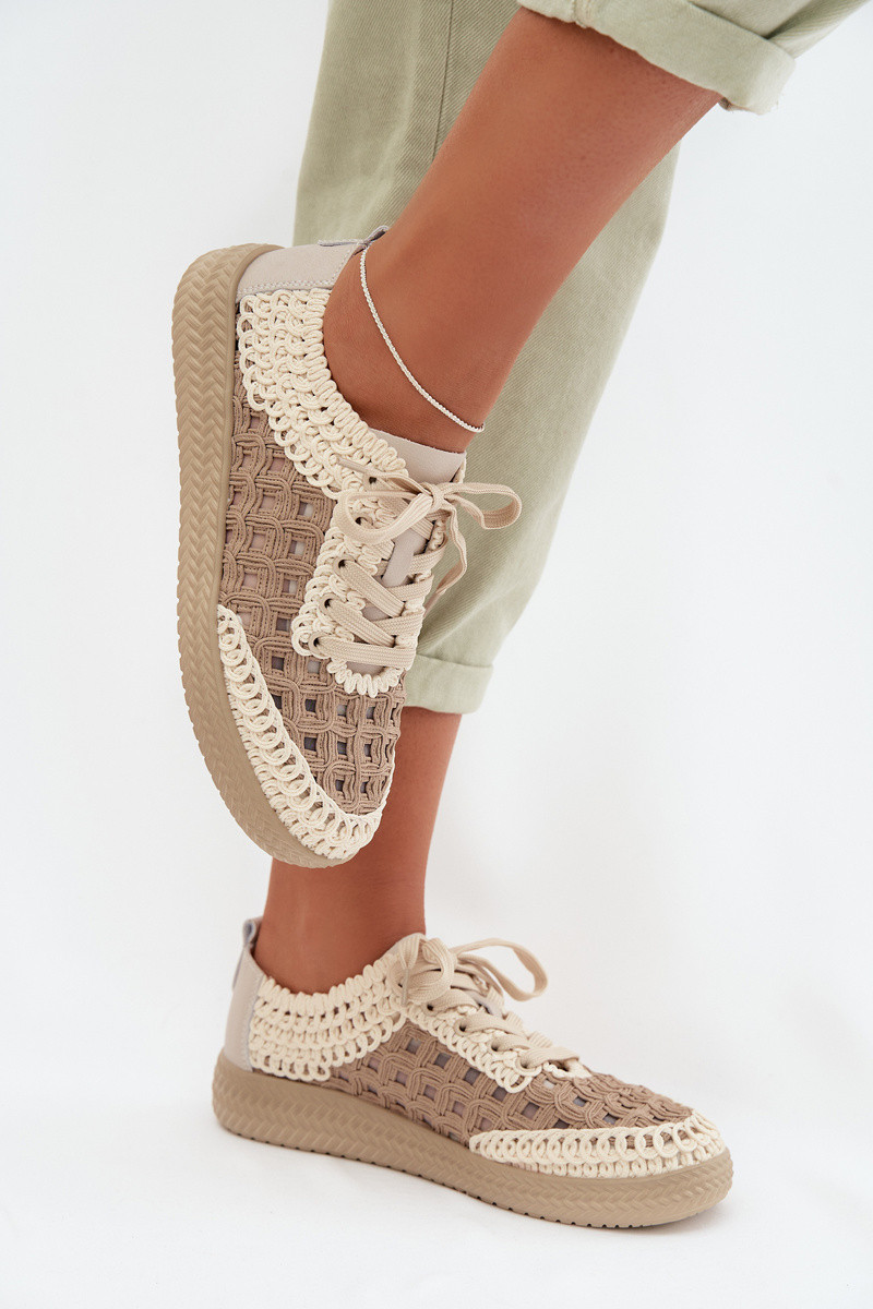 D&A GR61-5951 sandfarbene gemusterte Schuhe für Frauen aus Leder
