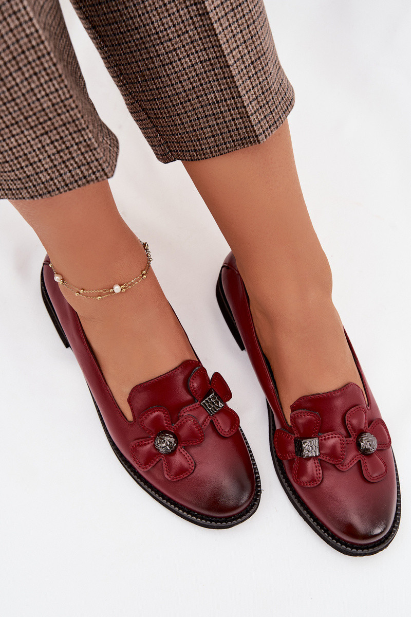 Damen Schuhe mit breitem Absatz und Blumenmuster in Bordeaux Tavillette