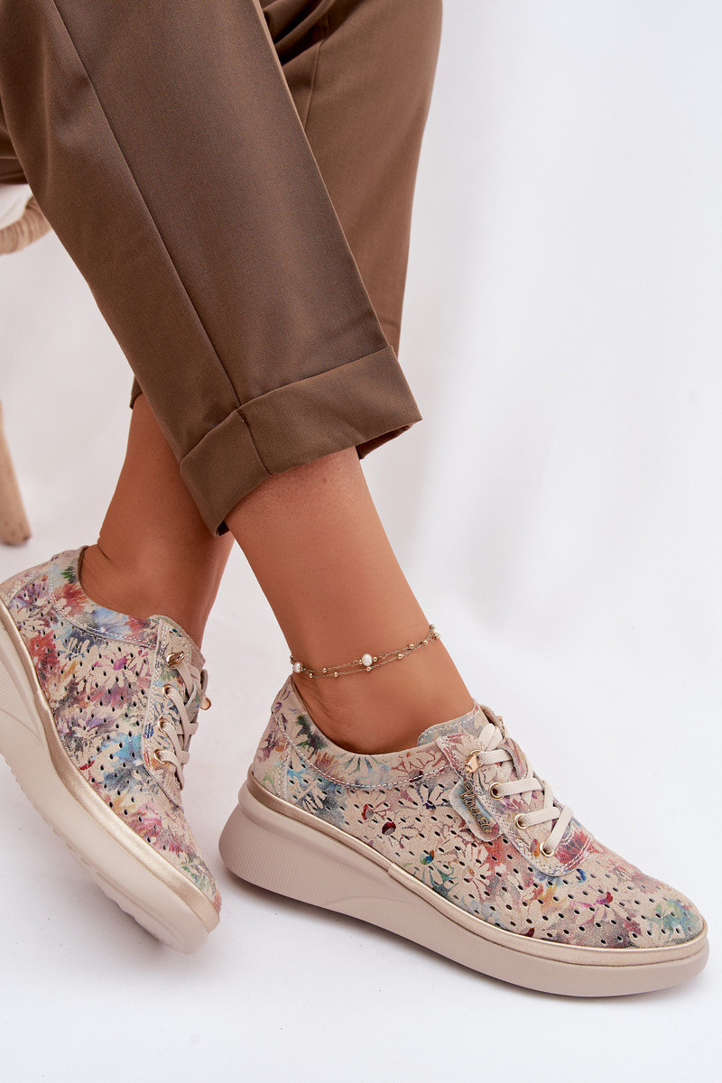 Durchbrochenes INildleder Schuhe Feminin Vinceza 79603 Beige