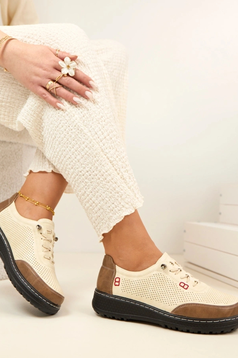 Sandfarbene Lochmuster Halbschuhe Solenne