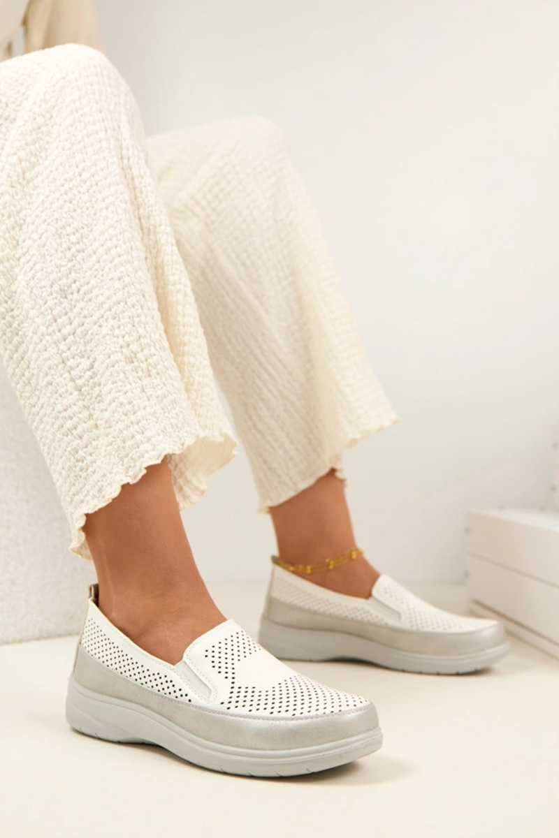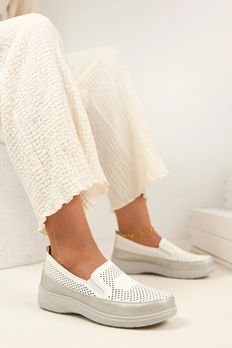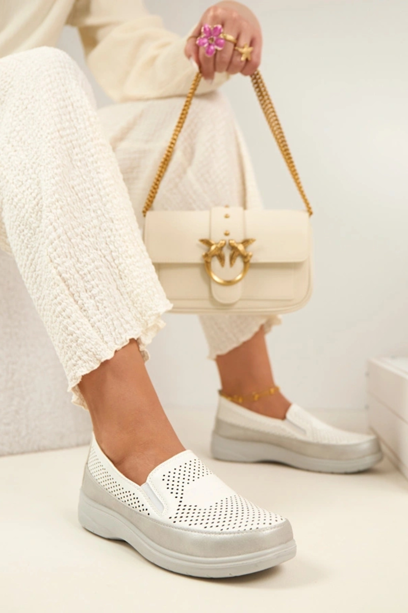 Weiße silberne durchbrochene Halbschuhe Aurelle
