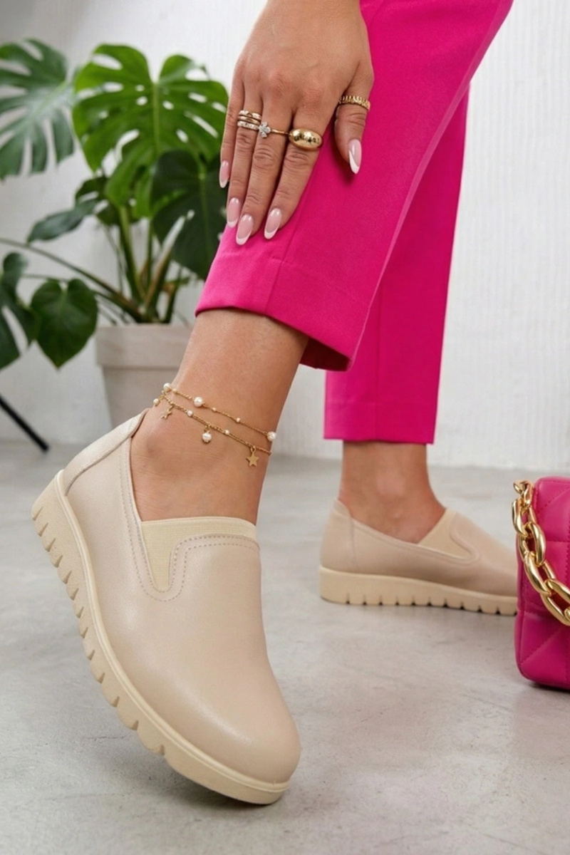 Sandfarbene Halbschuhe mit niedrigem Absatz Isolde