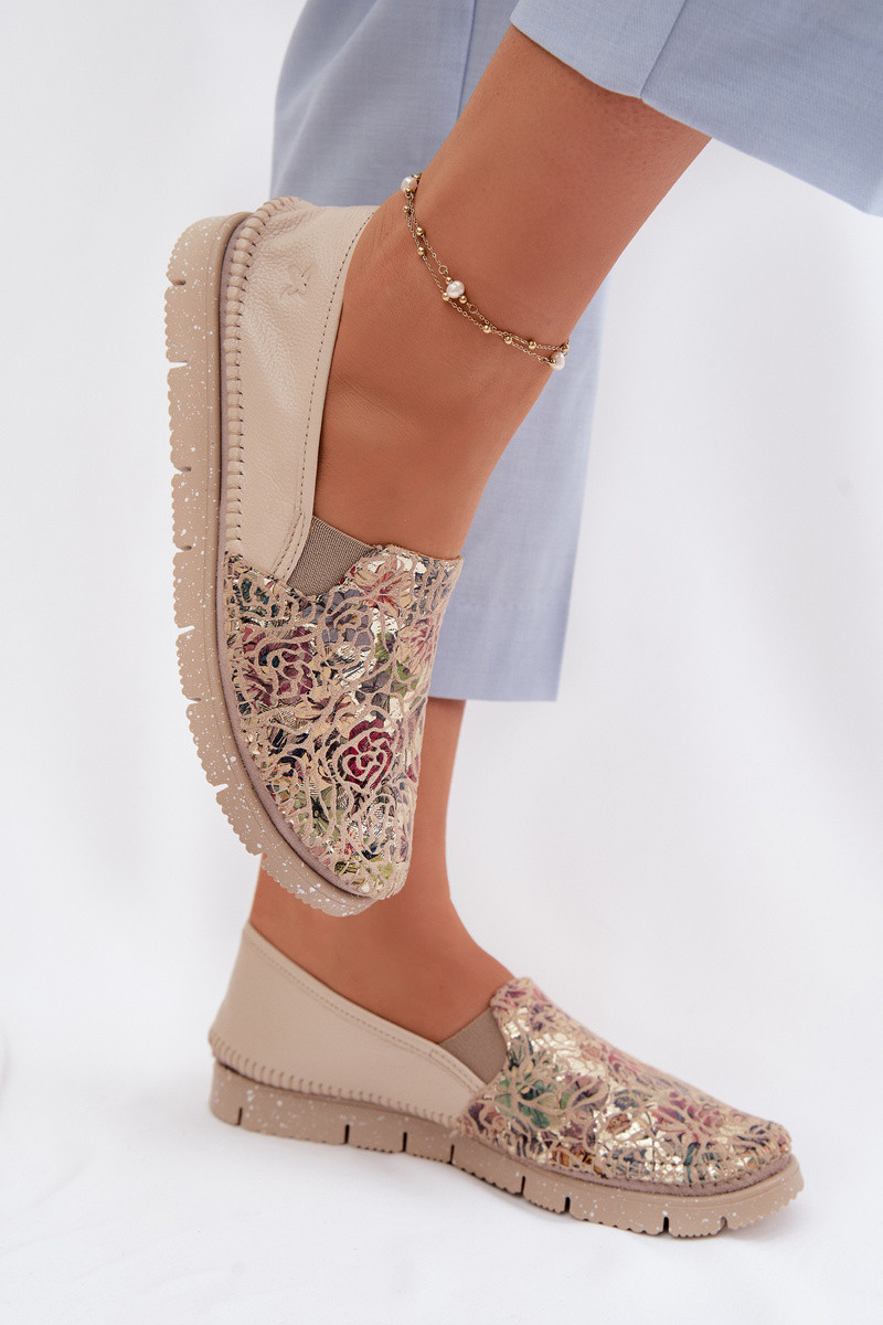 Rosafarbene textile Mokassins mit goldener Dekoration Bianca