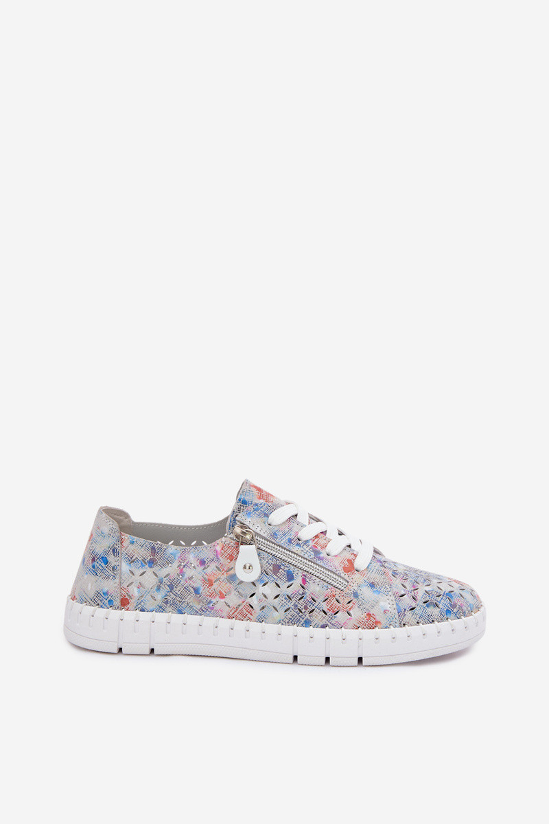 mit durchbrochenen Elementen SchuheErmöglichtturalnego aus INildlederu Silberfarbe Kamelia