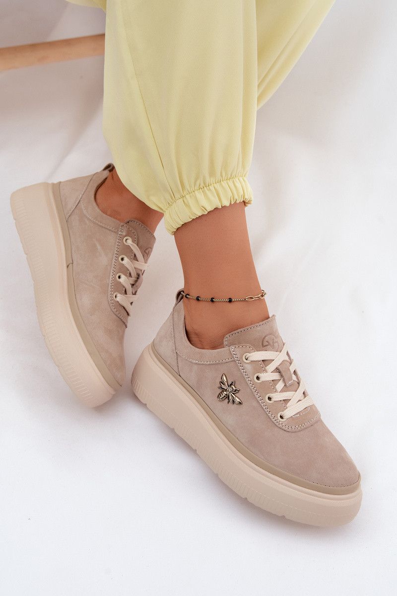 Faux-Suede Schuhe mit Plattform Vinceza 41523 sandfarben